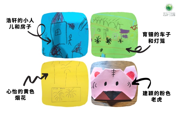 伴随着年味满满的农历新年歌曲,玉莲老师让小朋友们拿起画笔,选择喜欢的颜色纸,画下心目中能代表新年的图画。完成图画后,小朋友们分享了对于颜色纸的选择和图画的意义,并将图画化成贺卡,送给喜欢的人。了解小朋友们的颜色选择、图画和选择送贺卡的对象后,玉莲老师为家长们提供反馈,以协助小朋友多多表达情绪与感受。